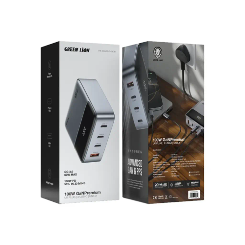 هاب شارژر رومیزی گرین لاین Green Lion GN100WADUK 100W GaN Premium UK Plug Adapter۴٬۹۸۰٬۰۰۰ 27%