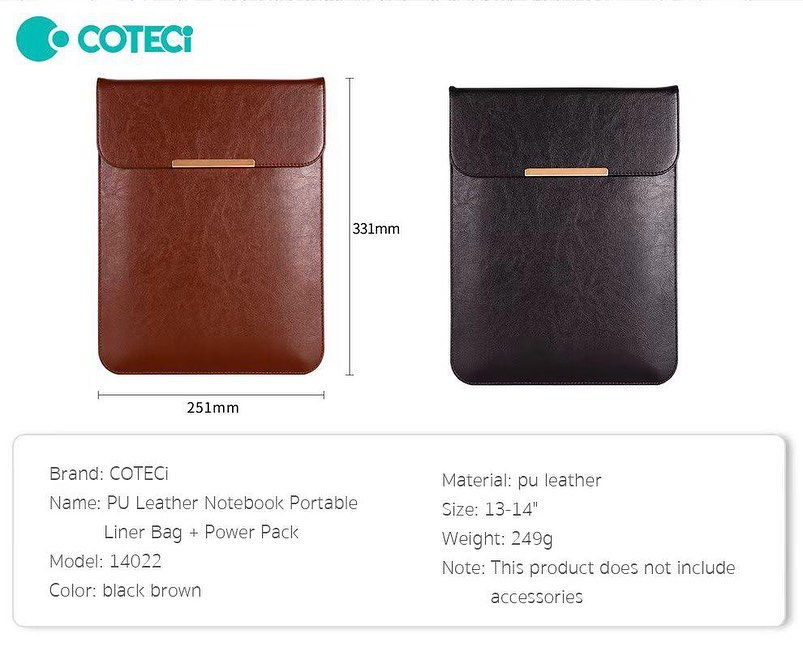 کیف چرم لپتاپ مدل COTECi Pu Leather Notebook Portable Liner Bag + Power Pack 14022