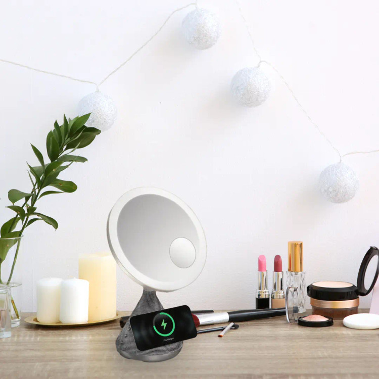 پد شارژ بیسیم تعبیهشده در پایه آینه، با توان شارژ تا ۱۵ وات، امکان شارژ سریع گوشیهای هوشمند سازگار با Qi را فراهم میکند — حتی زمانی که مشغول آماده شدن هستید.