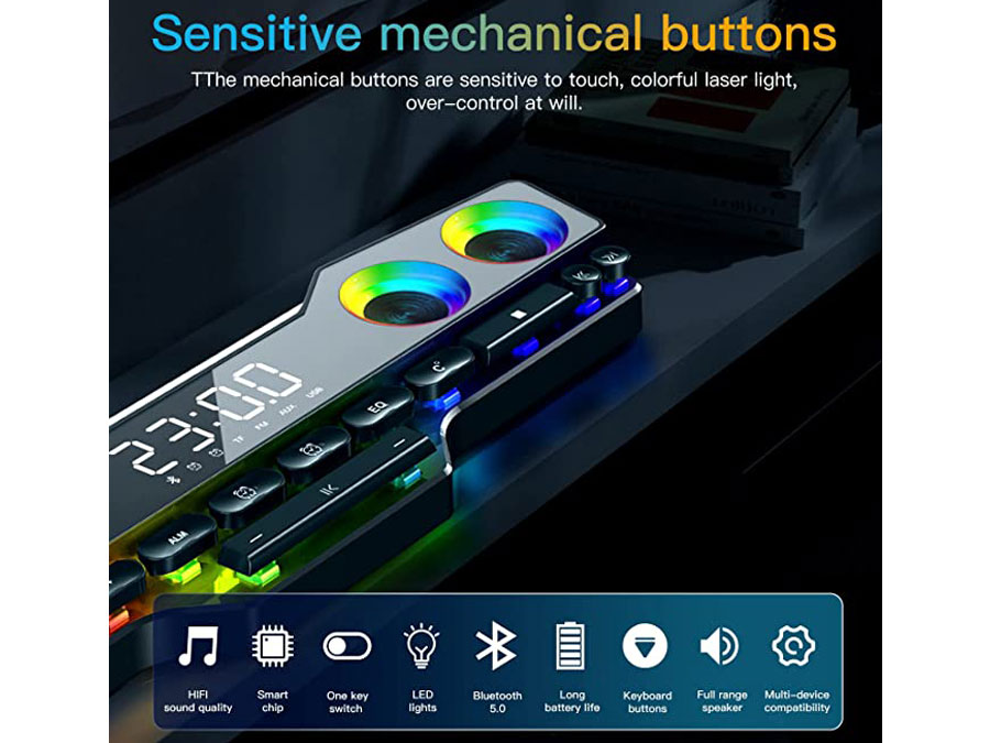 اسپیکر بلوتوثی رسی Recci E-Sports Wireless Speaker RY05 یک بلندگوی بسیار زیبا و جذاب برای روی میز است که علاوه بر زیبایی با باس قوی و صدای واضحی که دارد امکان گوش کردن به موسیقی دلنشین و یا بازی به همراه صدایی واضح را برایتان مهیا میکند. این محصول از دو زنگ هشدار هم برخوردار است و به راحتی میتوانید روی ساعت دلخواه آن را تنظیم کنید.
