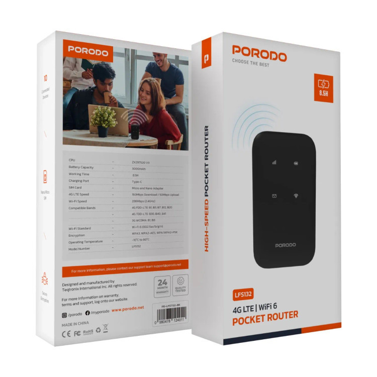 مودم جیبی پرودو PD-LFST132 ظرفیت ۴G LTE و WiFi 6