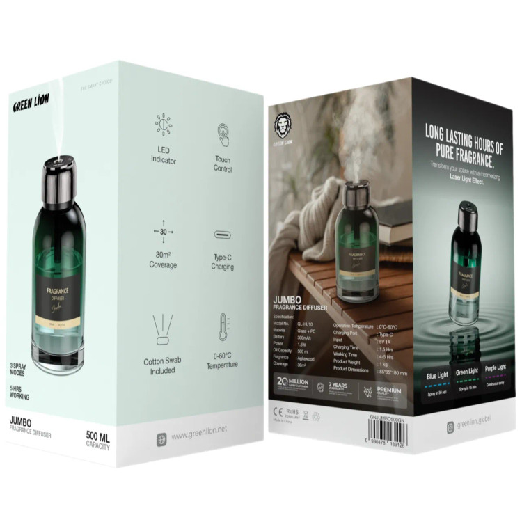 با ﺧﻮﺷﺒﻮ ﮐﻨﻨﺪه ﮔﺮﯾﻦ ﻻﯾﻦ مدل ﺟﺎﻣﺒﻮ ۵۰۰ میلی لیتر فضای خود را با رایحهای لوکس و طراحی شیک سبز رنگ متحول کنید. این دیفیوزر با ظرفیت ۵۰۰ میلیلیتر، رایحهای قدرتمند از عود آگالوود را در محیطی تا ۳۰ متر مربع پخش میکند. با استفاده از درگاه شارژ Type-C، تنها در ۱.۵ ساعت شارژ میشود و تا ۴ تا ۵ ساعت به صورت مداوم محیط را خوشبو نگه میدارد.