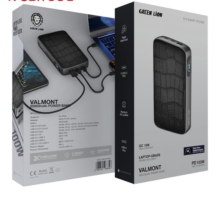 پاوربانک 20000 میلی آمپر 100 وات گرین لاین Green Lion Valmont 20000mAh Power Bank PD 100W◇