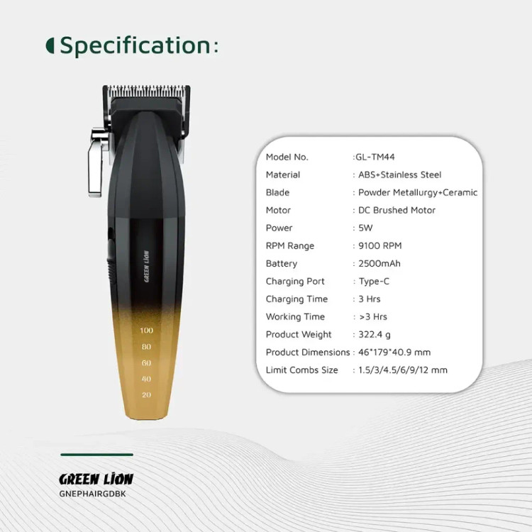 ماشین اصلاح Green Lion Edge Pro تلفیقی از قدرت، دقت و طراحی مدرن است. این دستگاه با بهرهمندی از موتور DC با سرعت حدود ۹۱۰۰ دور در دقیقه و باتری با ظرفیت ۲۵۰۰ میلی آمپر ساعت، امکان انجام اصلاحی بیوقفه تا حدود ۳ ساعت را فراهم میکند. تیغههای ترکیبی متالورژی پودری و سرامیک کیفیت برش بالا و دوام مناسب را تضمین میکنند. در طراحی بدنه، ارگونومی رعایت شده تا دسترسی و کنترل در هنگام اصلاح راحت باشد و دستگاه علاوه بر کارایی، جلوه لوکسی نیز در محیط سرویس بهداشتی خواهد داشت.
