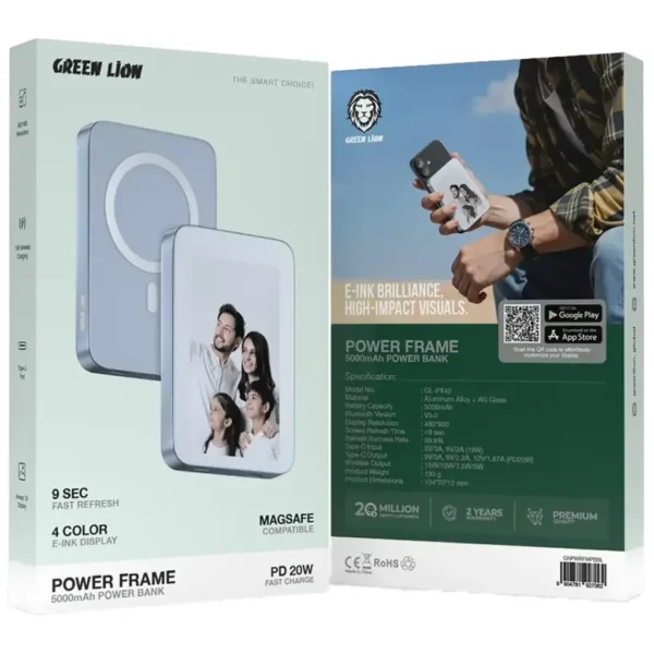 📊 مشخصات فنی پاوربانک Green Lion Power Frame 5000mAh