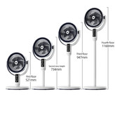 این پنکه قابلیت استفاده در حالت رومیزی و ایستاده را دارد. با پایه تلسکوپی قابل تنظیم در سه سطح ارتفاع مختلف، میتوانید آن را متناسب با محل استفاده تنظیم کنید. در بلندترین حالت، این پنکه در دستهی پنکههای پایهبلند قرار میگیرد و فضای بیشتری را خنک میکند.