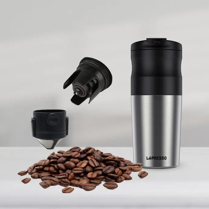 قهوه ساز قابل حمل لپرسو Lepresso LPCMGSM mini coffee maker grinder mug
