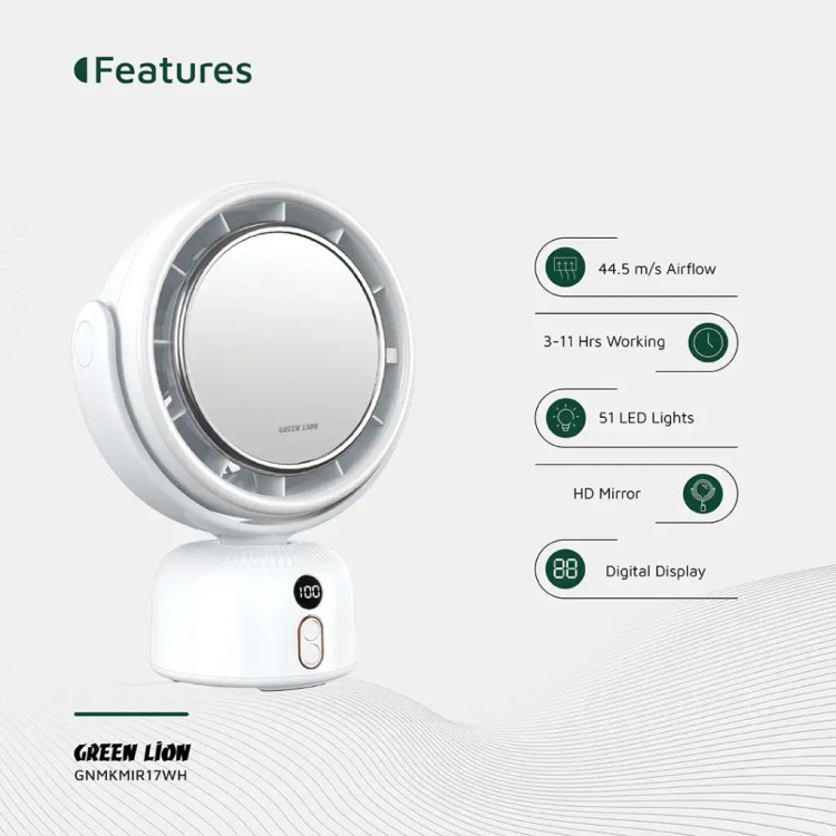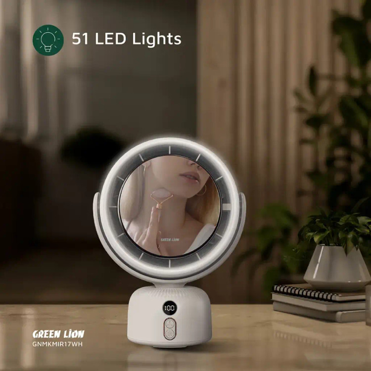 آینه آرایشی Green Lion Makeup Mirror Fan ترکیبی هوشمند از زیبایی و کارایی است که تجربهای متفاوت از آرایش و مراقبت شخصی را فراهم میکند. این محصول با طراحی مدرن و کاربردی، دارای نور LED قابل تنظیم در سه سطح روشنایی (کم، متوسط، زیاد) بوده و روشنایی ایدهآلی برای آرایش دقیق در هر شرایط نوری ایجاد میکند.