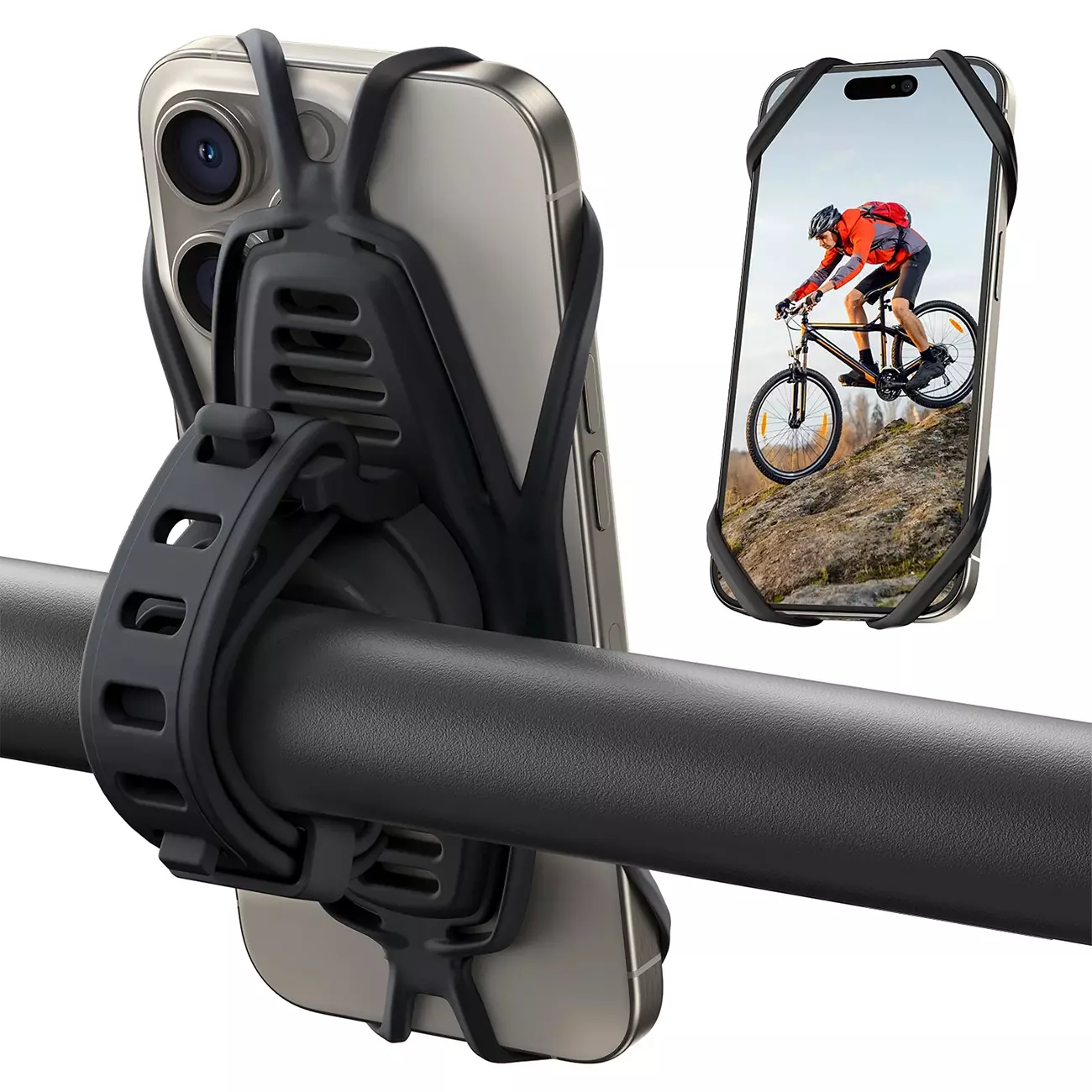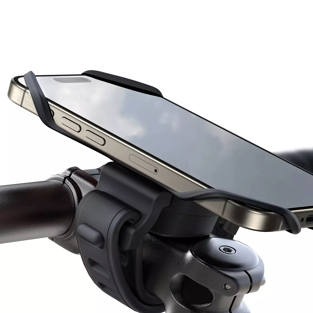 نصب سریع و بینیاز از ابزار روی دستههای دوچرخه، موتور، اسکوتر برقی، کالسکه کودک یا حتی سبد خرید فروشگاه! فقط کافیست بند سیلیکونی را دور فرمان ببندید.
