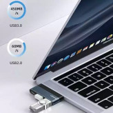 هاب 3 پورت US-SJ490 برند یوسمز با ابعاد 9.8×32.9×61 میلی متر و وزن 16 گرم ساخته شده از جنس آلیاژ آلومینیوم و پلاستیک ABS می باشد که این ویژگی ها باعث شده تا بتوان این محصول را به راحتی حمل و در هر شرایطی از آن استفاده کرد. هاب تایپ سی یوسمز دارای 3 پورت USB-3.0 و USB-2.0 (توانایی اتصال موس ، کیبورد ، موبایل و ..) ، USB-C (توانایی ارائه شارژ سریع 60 واتی) می باشد که علاوه بر جابجایی راحت خود کارایی مناسبی را نیز برای کاربران فراهم می سازد.در آخر هم باید به این موضوع اشاره کرد که پورت رابط این هاب نیز تایپ سی بود و به صورت یک تکه می باشد.