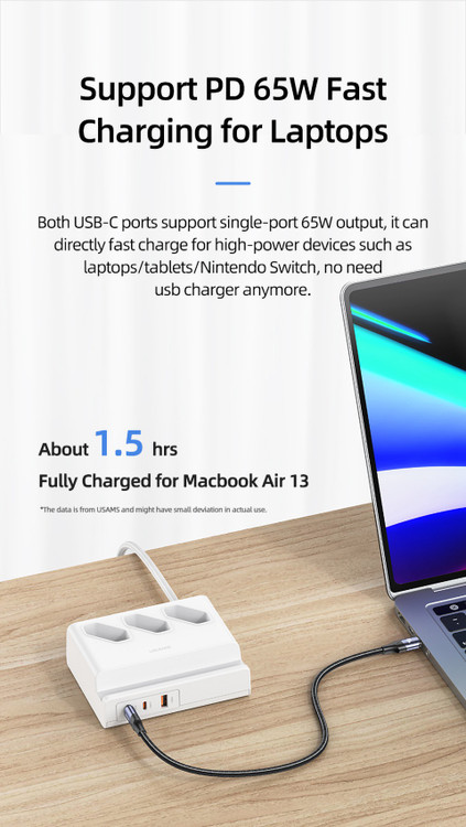 هاب فست شارژ و چند راهی برق یوسمز مدل USAMS Super Si Fast Charging US-CC160 با حداکثر توان 65w