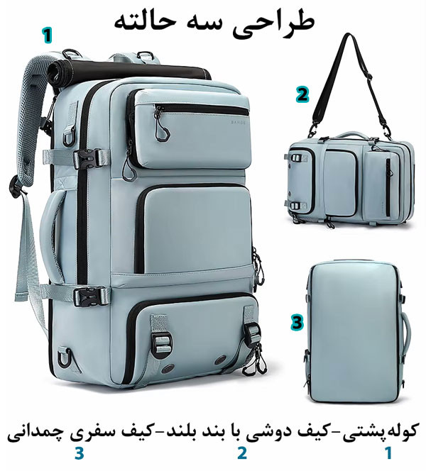 قابل استفاده به سه حالت کوله پشتی، کیف دوشی با بند بلند، ساک مسافرتی دستی