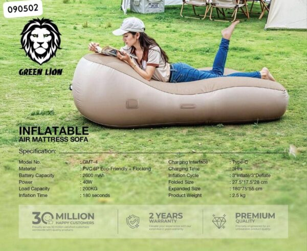 تشک بادی موجی گرین لاین همراه با پمپ شارژی مدل 090502 Green Lion Inflatable Air Mattress Sofa