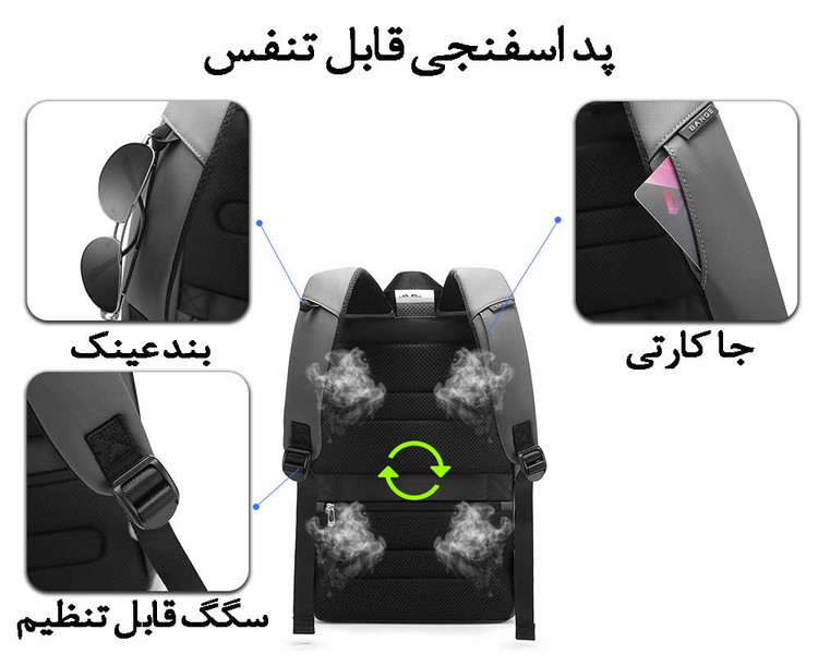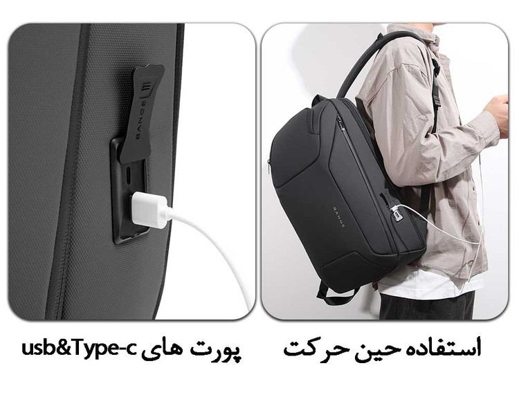 با وجود درگاه USB تعبیهشده در سمت کیف، در هر زمان میتونید گوشی یا دستگاههای خودتون رو شارژ کنید.