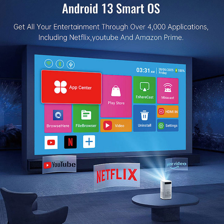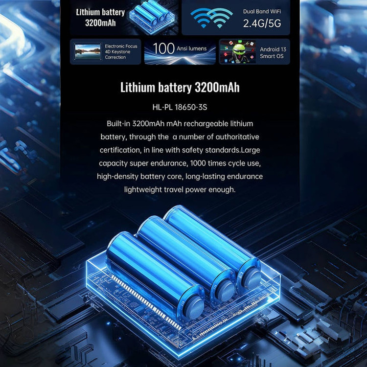 🔋 باتری هوشمند: تنها پروژکتور جیبی با باتری 3200mAh در این رده قیمت — واقعاً برای خارج از خانه طراحی شده.