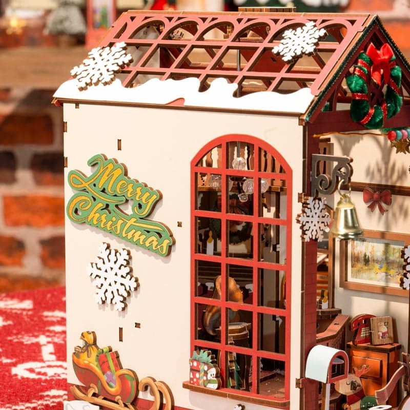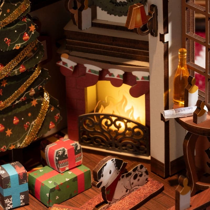 داستان این مدل، تصویری از یک کلبهی آجری را روایت میکند که در آن، در شبی برفی، آتش شومینه روشن است، صدای خندهی کودکان و زنگولههای گوزنها در هم میآمیزد و سگ کوچکی با هیجان به استقبال مهمانان و جشن میرود. این حالوهوای گرم و صمیمی، در هر گوشهی ماکت دیده میشود. از اسباببازیهای گوشهی اتاق و ناحیهی بازی کودکان گرفته تا نوشتهی Merry Christmas که پیام تبریک را بیواسطه به هر بینندهای منتقل میکند.