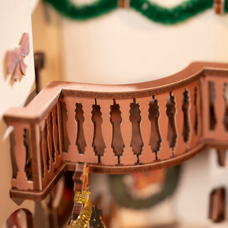 قطعات این مدل از چوب با برش دقیق لیزری ساخته شدهاند و همهی صفحات از قبل رنگآمیزی شدهاند، بنابراین نیازی به نقاشی جداگانه نیست. طراحی اتصال فشاری باعث میشود بدون چسب بتوانید قطعات را در کنار هم قرار دهید. راهنمای مونتاژ و شمارهگذاری روی قطعات، کار را حتی برای سازندگان مبتدی هم ساده میکند. در حدود 3 ساعت میتوان این صحنهی کامل کریسمسی را سرهم کرد و قدمبهقدم از این فرایند لذت برد.