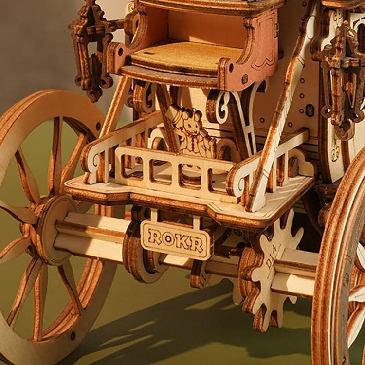 ساختنی ROKR Stagecoach AMKA1 شما را به قرن نوزدهم میبرد؛ جایی که کالسکههای چوبی روی جادههای سنگفرششده حرکت میکردند و صدای زنگ اسبها در خیابانها میپیچید. این مدل مکانیکی موزیکال، بازسازی دقیقی از یک کالسکه کلاسیک اروپایی است که با چرخاندن فنر درونش، نهتنها موسیقی دلانگیزی را پخش میکند، بلکه خودِ کالسکه نیز بهآرامی به حرکت درمیآید. ترکیب ظرافت هنری، مهندسی مکانیکی و حس نوستالژی، این مدل را به یکی از خاصترین محصولات برند ROKR تبدیل کرده است.
