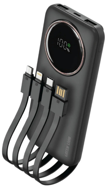پاوربانک Green Lion Power Pulse 10000mAh وسیلهای سازگار و قابل اعتماد است که از طریق آن میتوان وضعیت شارژ مثبت را در حال حرکت حفظ کرد. این پاوربانک که از ABS و PC ساخته شده است، به اندازه کافی قوی است که تا 10000 میلیآمپر ساعت ظرفیت باتری واقعی را ارائه دهد.این پاوربانک که به تعدادی گزینه ورودی و خروجی مجهز است، از شارژ سریع از طریق پورت Type-C و کابل – PD 22.5W و پورتهای USB-A – QC 22.5W پشتیبانی میکند تا انعطافپذیری را برای دستگاههای مختلف فراهم کند. علاوه بر این، دارای کابلهای لایتنینگ و میکرو داخلی است تا طیف وسیعی از نیازهای شارژ را برآورده کند. صفحه نمایش دیجیتال روی پاوربانک شما را از میزان باتری باقی مانده مطلع میکند، در حالی که کابلهای داخلی راحتی را افزایش میدهند، زیرا نیازی به حمل لوازم جانبی اضافی نیست. با قابلیت شارژ سریع 22.5W، قرار است به طور موثر برق را تحویل دهد و برای تلفنهای هوشمند، تبلتها و سایر دستگاههای دارای USB عالی است. Green Lion Power Pulse یک همراه شارژ قابل حمل نهایی است که از نظر طراحی جمع و جور و با ویژگیهای پیشرفته است.