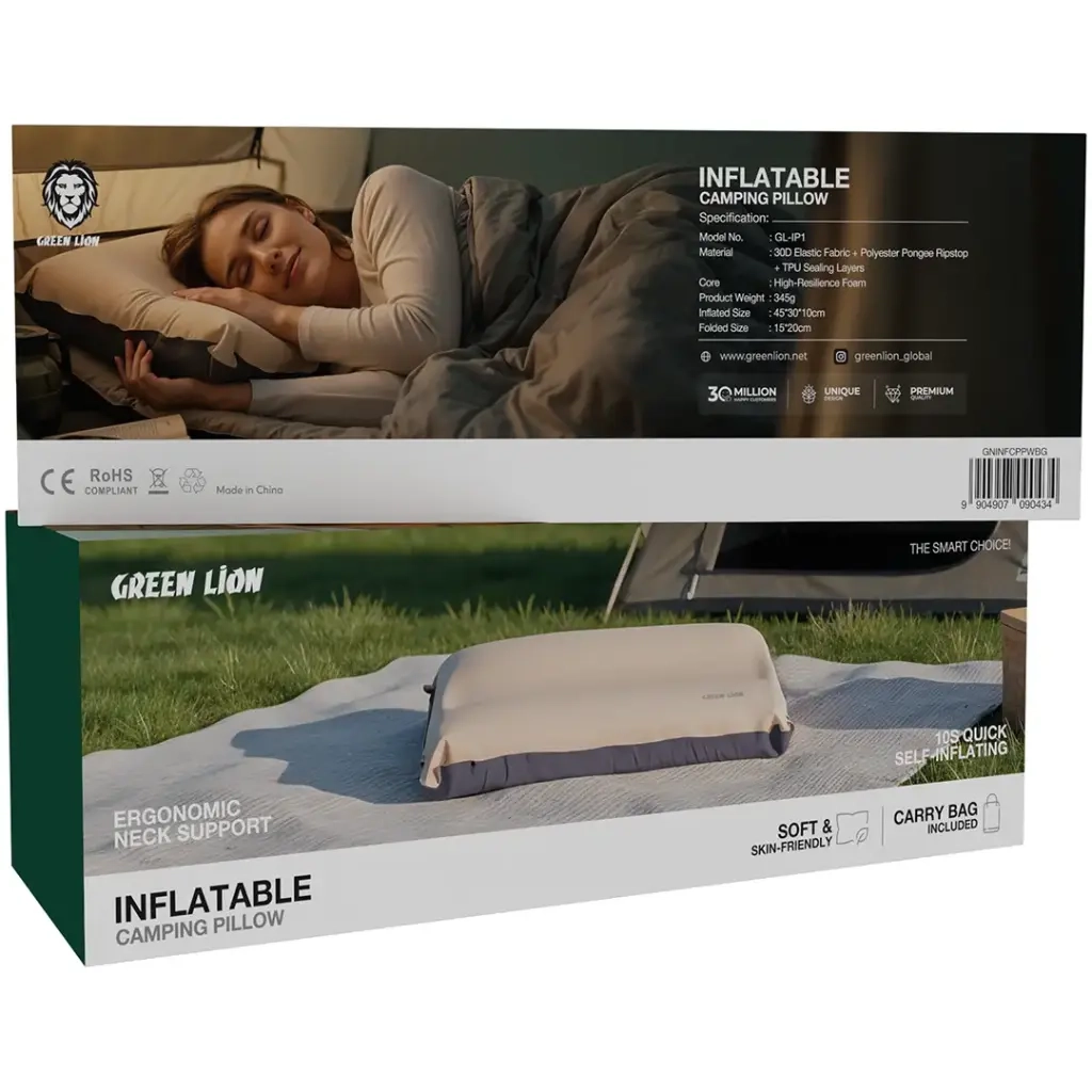 بالشت بادی کمپینگ Green Lion Inflatable Camping Pillow ترکیبی ایدهآل از راحتی، دوام و طراحی هوشمندانه است که برای کمپینگ، کوهنوردی و سفر طراحی شده است. این بالشت از پارچه کشسان 30D، پلیاستر پونجی ریپاستاپ و لایههای آببندی TPU ساخته شده که مقاومت بالایی در برابر پارگی داشته و برای استفاده طولانیمدت کاملاً مناسب است.