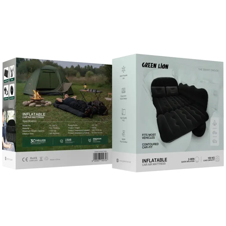تشک بادی خودرو Green Lion Inflatable Car Air Mattress راهحلی ایدهآل برای افزایش راحتی در سفرهای جادهای، کمپینگ و استراحت داخل خودرو است. این تشک از PVC فلوکدار مقاوم ساخته شده و با طراحی موجدار ارگونومیک، پشتیبانی مناسب و راحتی بالایی را برای بدن فراهم میکند.