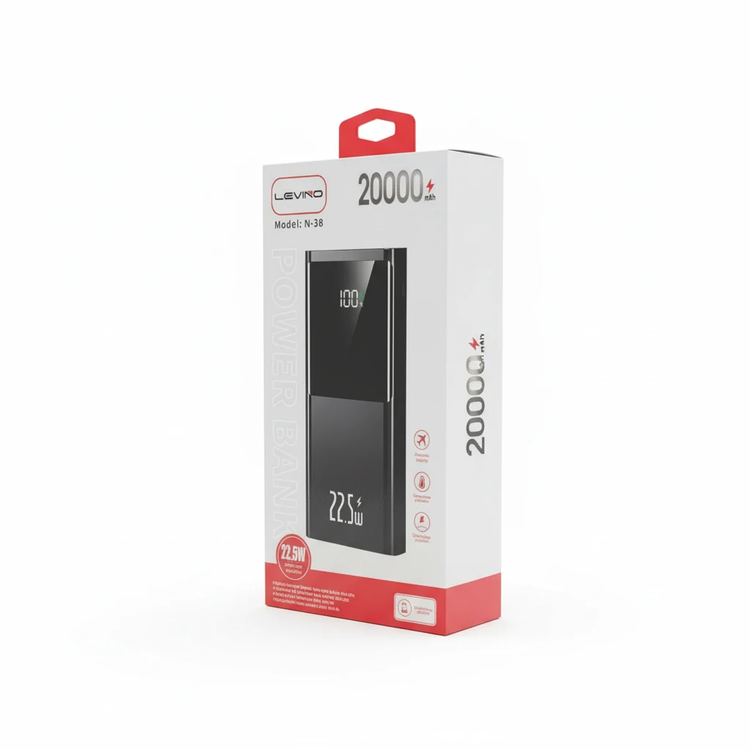 پاوربانک 20000 لوینو مدل N-38 یکی از گزینههای پرفروش و کارآمد برند لوینو است که برای استفاده روزانه، سفر یا موقعیتهایی که دسترسی به برق شهری محدود است طراحی شده است. ظرفیت ۲۰۰۰۰ میلیآمپرساعتی این مدل، آن را برای شارژ مکرر تلفن همراه، هدفون بیسیم و دستگاههای دیجیتال کوچک مناسب کرده است.