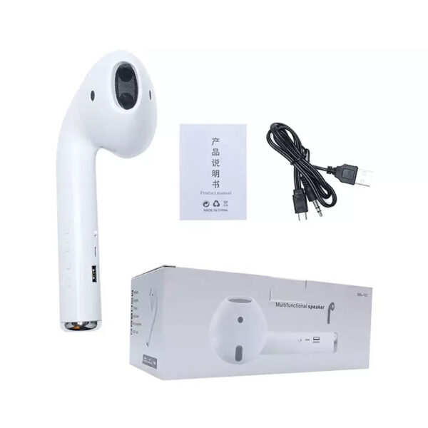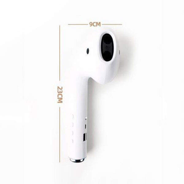 این اسپیکر بلوتوثی، ظاهری شبیه به یک ایرپاد بزرگ دارد. اسپیکر بلوتوثی طرح ایرپاد مدل Giant Headset توسط فناوری بلوتوث نسخه 5.0 به دستگاه هایی از جمله گوشی، تبلت، لپ تاپ و… متصل می شود و تا فاصله 10 متر بدون قطعی موزیک را با وضوح صدای عالی پخش می کند. این اسپیکر علاوه بر اتصال بلوتوث، دارای شیار کارت حافظه (micro sd) و جک 3.5 میلی متری می باشد تا به وسیله ی چند روش، اتصال کاربر به اسپیکر را ساده تر کرده و موسیقی های مورد علاقه ی شما را به راحتی و با بالاترین کیفیت صدا پخش نماید.