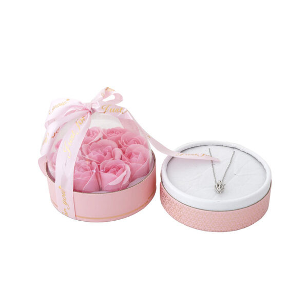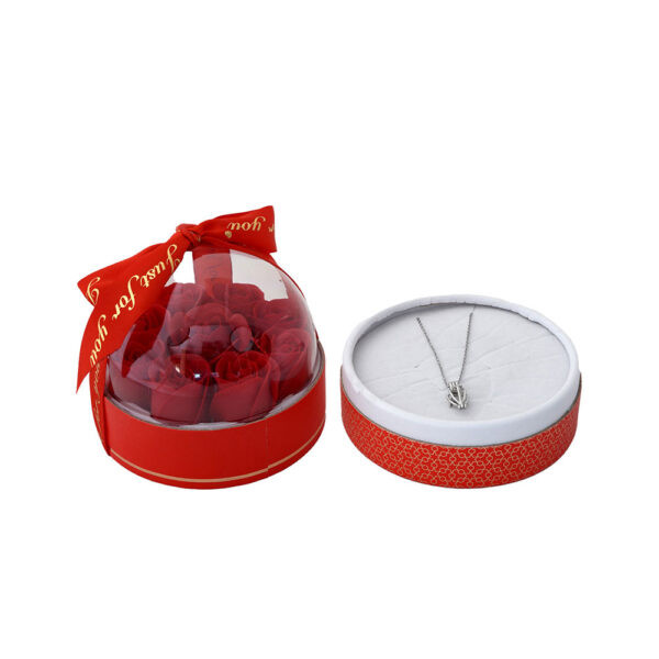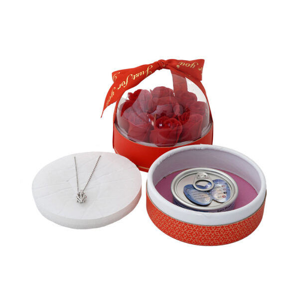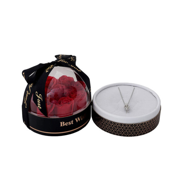 باکس گل سوپرایزی با گردنبند مروارید عشق مدل دوم C( پک ولنتاین)