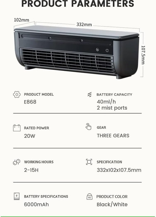 دارای مخزن آب داخلی برای قابلیت مه پاشی.