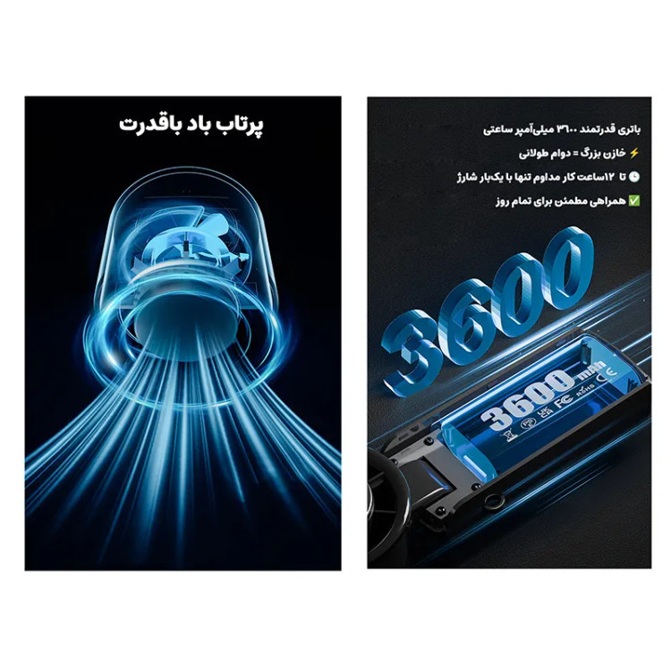 پنکه شارژی مجنتیک مدل FC8 ظرفیت ۳۶۰۰ میلی آمپر ساعت با سیستم خنک کننده