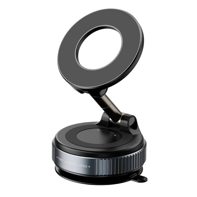 برجستهترین ویژگی این هولدر مکشی موبایل، پایه آن است که فراتر از یک ساکشن کاپ معمولی عمل میکند. این پایه مجهز به یک مکانیزم وکیوم است که با چرخاندن یک اهرم (ON/OFF)، هوای زیرین را به طور کامل تخلیه کرده و یک خلاء قدرتمند ایجاد میکند. در نتیجه، هولدر با استحکام فوقالعادهای به سطوح صاف یا حتی سطوح کمی متخلخل مانند داشبورد خودرو میچسبد. این قدرت چسبندگی به قدری بالاست که حتی در ترمزهای شدید، پیچهای تند یا جادههای ناهموار نیز گوشی شما کاملاً ثابت و بدون لرزش باقی میماند.
