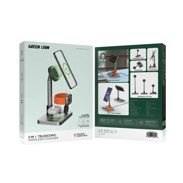 استند شارژر بیسیم 3 در 1 گرین لاین مدل TELESCOPIC (GX28)