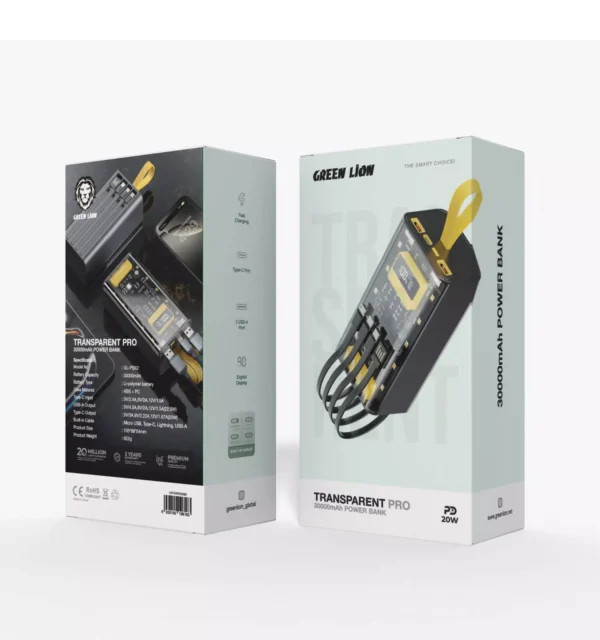 پاوربانک گرین مدل Transparent Pro ظرفیت ۲۰ هزار میلی‌آمپر