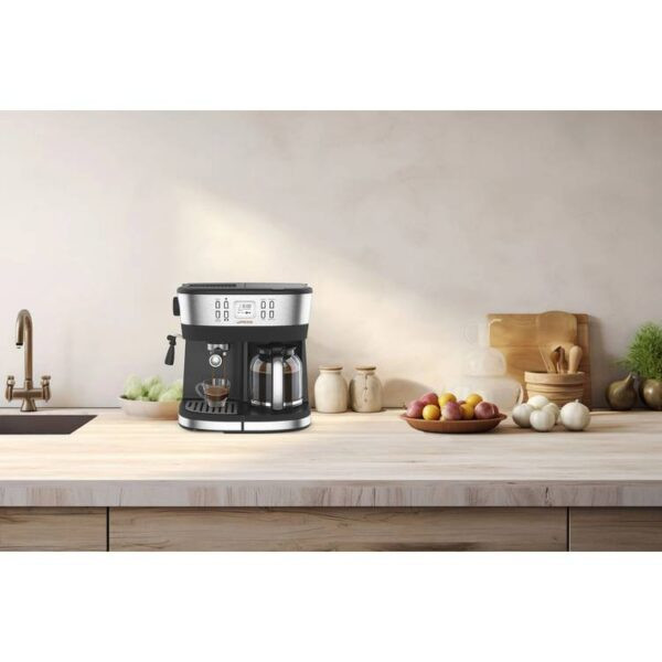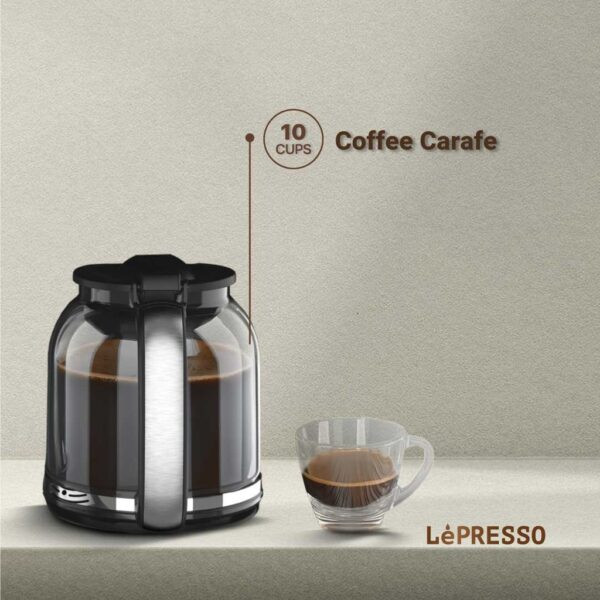 این قهوه ساز همه کاره، راحتی قهوه قطره ای را با غنای اسپرسو برای یک تجربه کامل دم کردن قهوه ترکیب می کند. این دستگاه مجهز به ولتاژ نامی 220-240 ولت، فرکانس نامی 50-60 هرتز و توان نامی 1690-2015 وات است، این دستگاه نوید عملکرد ثابت و پایدار را می دهد و تمام نیازهای دم کردن شما را برآورده می کند. در عین حال قادر خواهد بود قهوه شما را در دمای ایده آل 82 تا 88 درجه سانتیگراد گرم و سرشار از رضایت نگه دارد. LePresso Dual Brew، با سیستم فشار 20 بار، حداکثر طعم و عطر را از تفاله های قهوه شما برای طعمی پررنگ و با اندام بیان می کند. کافه قهوه 10 فنجانی به شما این امکان را می دهد که برای خود، خانواده یا حتی میهمانان برای شرکت کامل، چه از نظر شخصی یا اجتماعی، به اندازه کافی دم کنید. فنجان قهوه عالی را با ویژگی شدت متغیر قهوه دم کنید تا بتوانید قدرت قهوه خود را سفارشی کنید. علاوه بر این، یک فیلتر نایلونی قابل شستشو باعث میشود تعمیر و نگهداری بسیار آسان شود و فرآیند دمآوری را برای کیفیت بهتر قهوه تمیز نگه میدارد. با صفحه نمایش ال سی دی بصری خود، نظارت و تغییرات در فرآیند دم کردن همیشه از نظر بصری در دسترس شماست. عملکرد Keep Warm حفظ دمای مناسب به مدت 2 ساعت است. این دستگاه مجهز به دوشاخه 3 پین انگلستان است تا بتوانید آن را در خانه یا محیط اداری کار کنید.