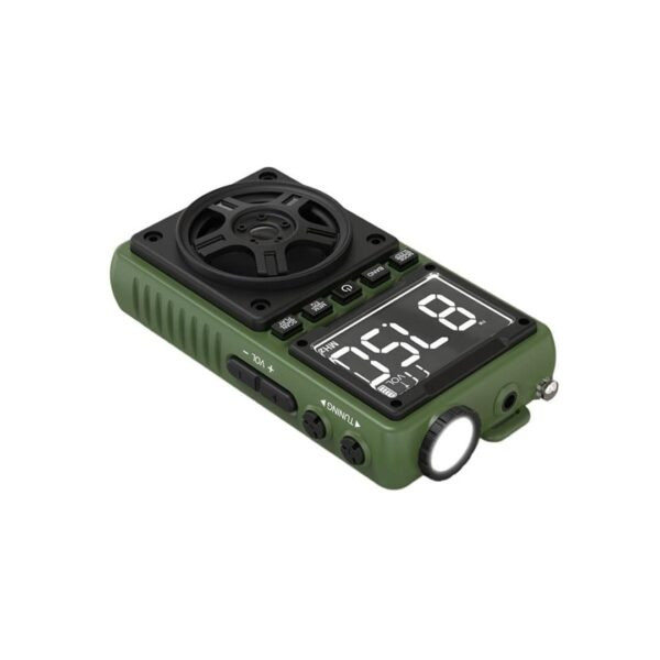 این دستگاه با بلندگوی 5 واتی معروف در کنار نور شدید چراغ قوه 1.2 واتی خود، فوقالعاده است و از قابلیتهای صوتی عالی برخوردار است. این رادیو دارای باندهای رادیویی FM/AM/SW، بلوتوث نسخه 5.4 برای اتصال به پخش موسیقی و همچنین یک اسلات میکرو SD برای اتصال سایر دستگاههای پخش است. این رادیو کوچک دارای حالت اسکن خودکار، نمایشگر رادیو دیجیتال و عملکرد قفل و خواب است که برای دسترسی و تنظیم آسان عالی است.