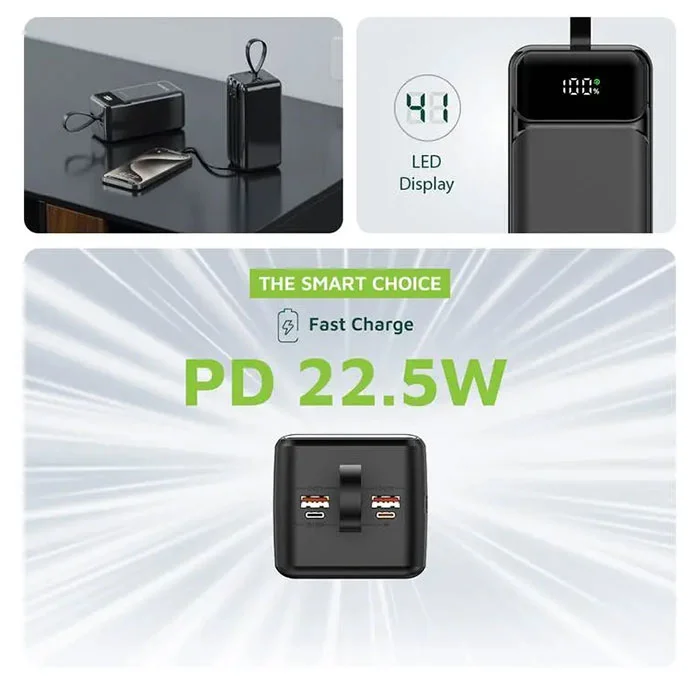 خروجیها: چندگانه (USB-A + USB-C) با پشتیبانی از PD Fast Charge