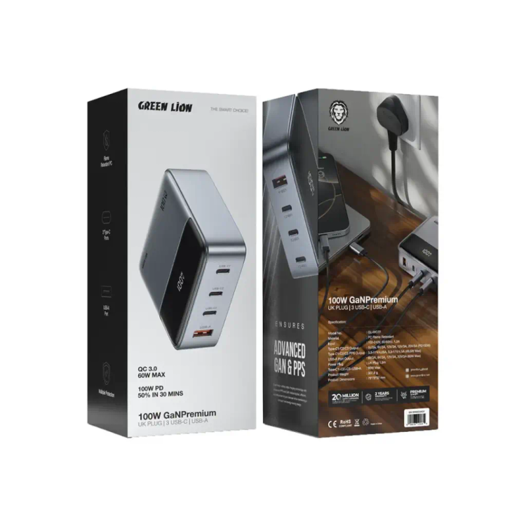 هاب شارژر رومیزی گرین لاین Green Lion GN100WADUK 100W GaN Premium UK Plug Adapter