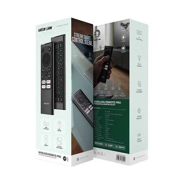ریموت بیسیم Green Lion Pro به همراه کیبورد و ماوس، کارایی و راحتی را در یک دستگاه شیک ترکیب میکند. این ریموت که با استفاده از آلیاژ آلومینیوم بادوام، ABS و ترکیبی از سیلیکون ساخته شده است، یک کیبورد کوچک ۶۱ کلیدی را در کنار یک ماوس بیسیم با وضوح ۱۲۰۰ DPI برای کنترل دقیق ارائه میدهد. از ویژگیهای اتصال آن میتوان به ۲.۴G و بلوتوث نسخه ۵.۲ اشاره کرد. برد عملیاتی آن ۱۰ متر است، بنابراین میتوانید دستگاههای خود را به راحتی کنترل کنید. از سوی دیگر، دارای ظرفیت باتری ۳۰۰ میلیآمپر ساعتی است که در حالت استفاده ۳۴ ساعت دوام میآورد و شارژ آن از طریق USB-C دو ساعت طول میکشد. به غیر از اندروید، با ویندوز، مک او اس، لینوکس و غیره، همچنین تلویزیونهای هوشمند، رایانههای شخصی، پروژکتورها و غیره کار میکند. یک دستیار صوتی یکپارچه، لایه دیگری از راحتی را اضافه میکند، در حالی که عملکرد ریموت IR به طور چشمگیری کاربرد دستگاه را گسترش میدهد. این چاقوی ارتش سوئیسی با ترکیب کیبورد، ماوس و ریموت کنترل، شریک ایدهآلی برای سرگرمی و کار در خانه است.