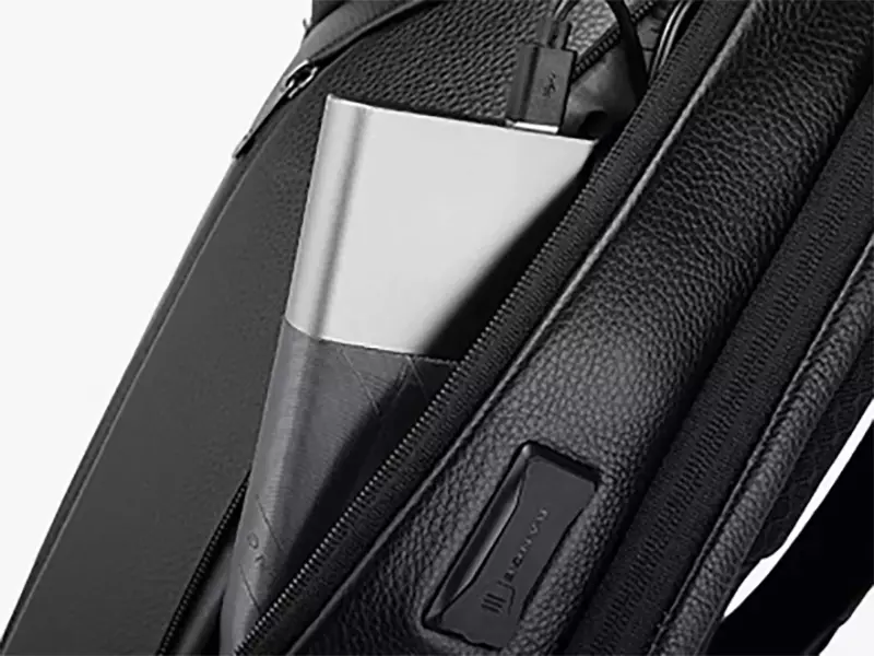 در قسمت کناره کوله پشتی ضد آب BG-6623 یک دریچه با درپوش طراحی شده که دارای پورت USB و Type-C میباشد که برای شارژ کردن موبایل یا هر دستگاه دیگری قابل استفاده است. فقط کافیست پاوربانک خود را از داخل به آن متصل کنید و فرایند شارژ را شروع نمایید. توجه داشته باشید پاوربانک که جزو محصول نیست.