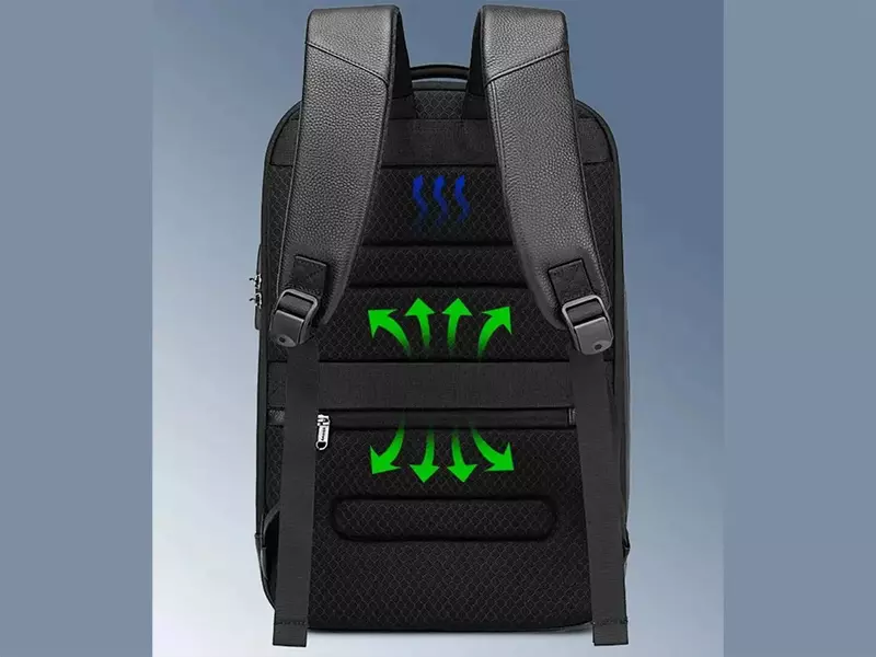 پشت کوله و بندهای شانهای پهن با اسفنجهای قابل تنفس پوشانده شده تا کیف کوله ای برای استفاده نرم و راحت باشد و از تعریق جلوگیری نماید. سیستم تهویه مانع از تعریق شده و از گرفتگی عضلات کمر و شانه جلوگیری میکند. به علاوه از بو جلوگیری میکند و عرق را جذب مینماید.