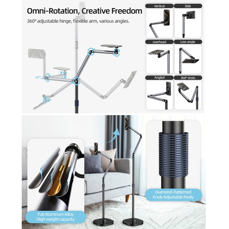 📏 ارتفاع قابل تنظیم ۶۰ تا ۱۶۰ سانتیمتر: مناسب برای فیلمبرداری، لایو استریم، کلاس آنلاین و تماشای فیلم